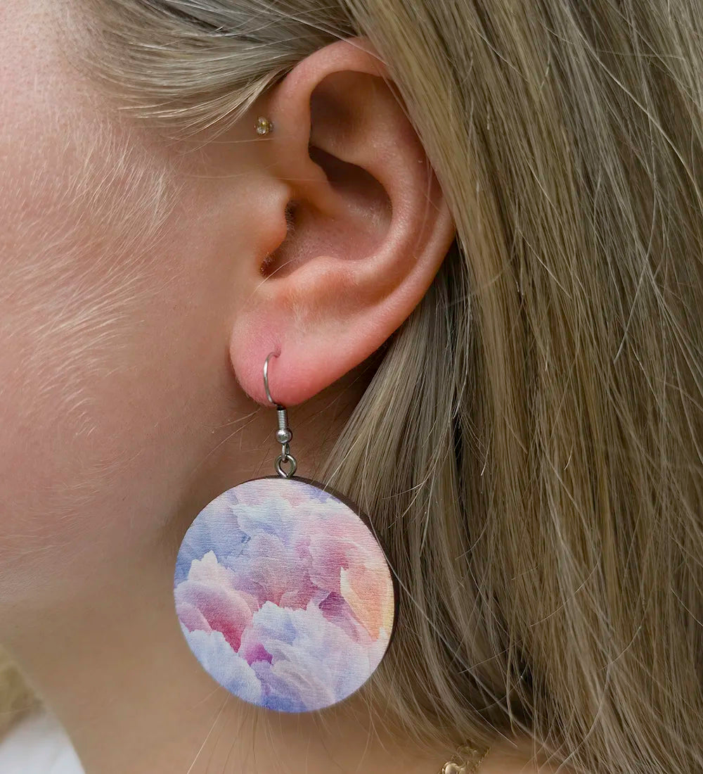 Kietoudu pehmeään unelmaan Hattarataivas-vanerikorvakorujen kanssa. Herkät pastellisävyt ja pilvimäinen, käsin piirretty kuviointi tuovat keveyttä ja ripauksen suloista leikkisyyttä jokaiseen asuun. Nämä korvakorut ovat kuin pieni pala taivasta, joka muistuttaa sinua arjen pienistä iloista.