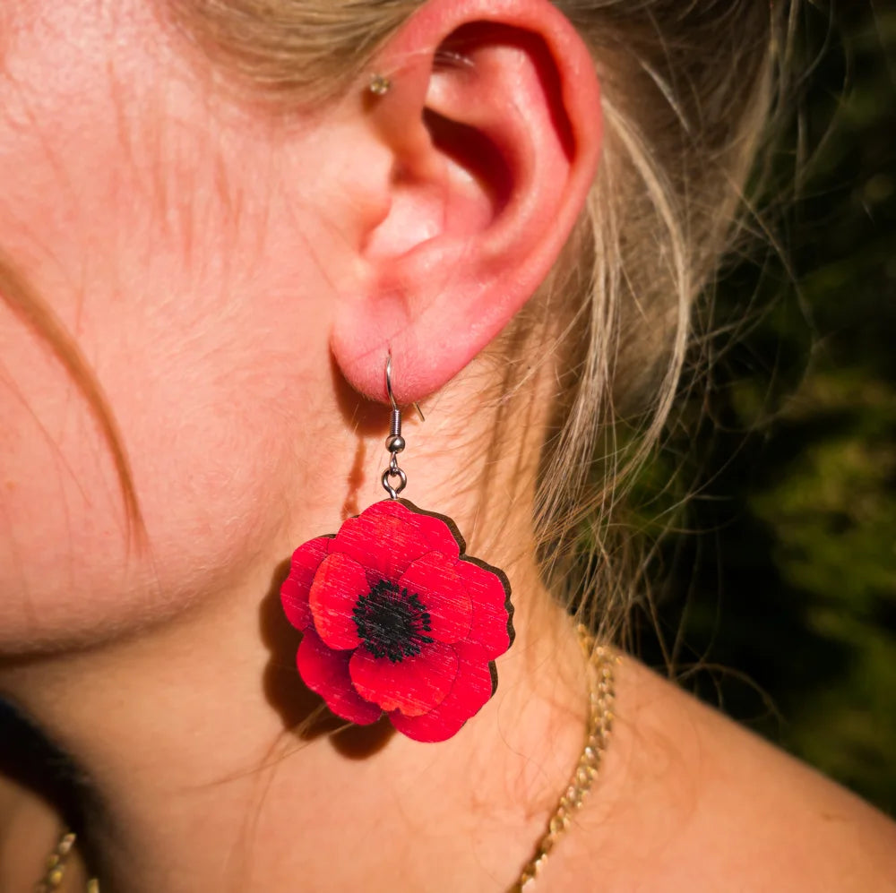 Rohkea kuin rakkaus ja herkkä kuin hetki. Unikko-korvakorut vangitsevat katseen hehkuvalla punaisuudellaan ja yksinkertaisella, mutta vaikuttavalla muodollaan. Tämä kukka ei kuiskaa – se puhuu suoraan sydämelle. Valmistettu kotimaisesta vanerista ja viimeistelty silkinpehmeäksi. Keveys yllättää, mutta vaikutus ei jää huomaamatta.