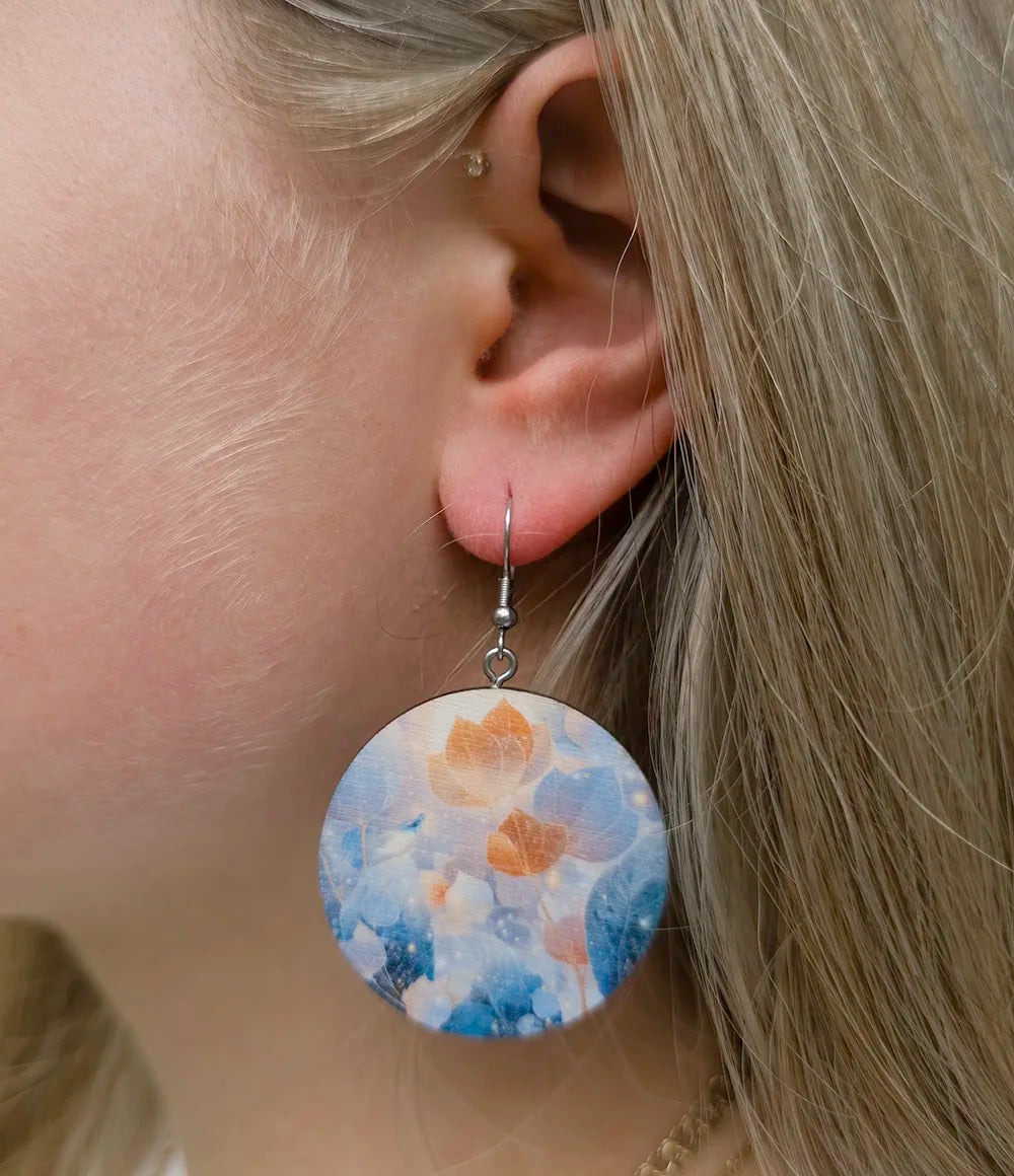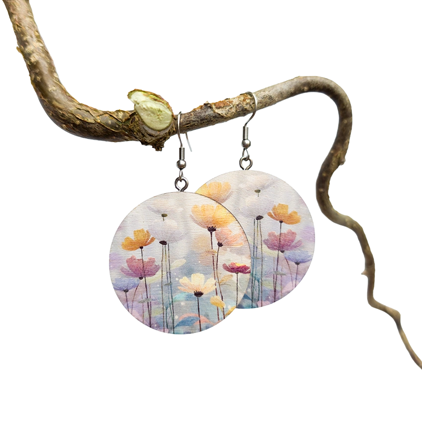 Anna keväisen aamun herkkien sävyjen koristaa päivääsi. Nämä kevyet Kevätunelma-vanerikorvakorut vangitsevat käsin piirrettyjen kukkien hennon kauneuden, tuoden ripauksen unenomaista taikaa tyyliisi. Ne ovat täydellinen valinta ilmaisemaan sisäistä herkkyyttäsi ja rakkauttasi luontoon.