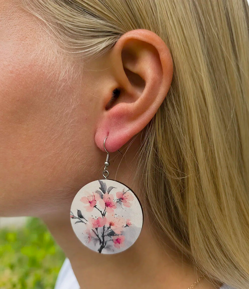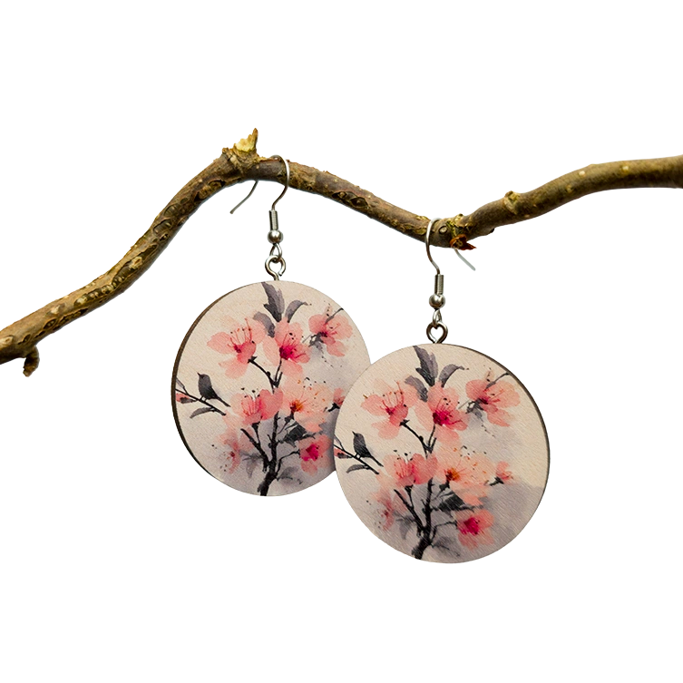 Sakura Sumu on heleän kevyt korvakorupari, jossa kirsikankukat leijuvat haalean vaalealla pohjalla kuin unenomaisessa sumussa. Akvarellimainen kuosi huokuu rauhaa, romantiikkaa ja ajattomuutta – täydellinen valinta pehmeään itseilmaisuun.