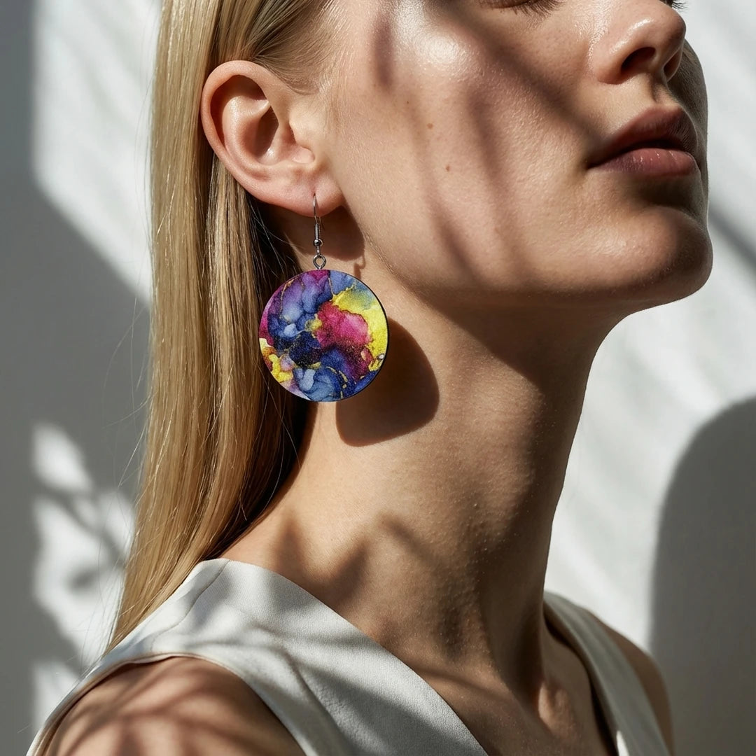Juhlista sisäistä taiteilijaasi näillä eloisilla korvakoruilla, joissa energiset väriroiskeet ja kultaiset yksityiskohdat luovat dynaamisen ja inspiroivan kokonaisuuden. Jokainen koru on kuin pieni pala modernia taidetta, joka kertoo tarinaa rohkeudesta ja luomisvoimasta. Kevyet puiset korvakorut on suunniteltu tuomaan väriä ja iloa päivääsi, tehden jokaisesta asusta persoonallisen. Täydellinen valinta sinulle, joka uskallat näyttää luovuutesi ja rakastat uniikkeja yksityiskohtia.