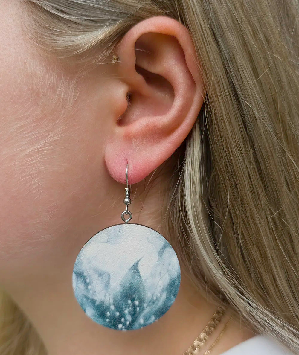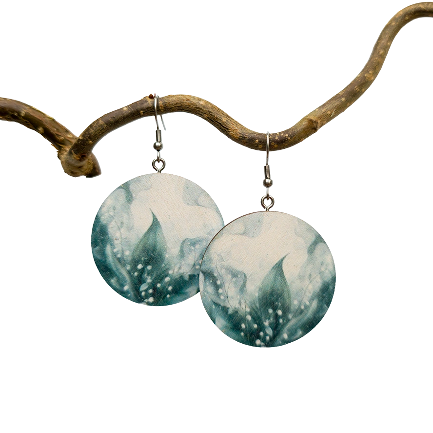 Kevyt ja kestävä laserleikattu suomalainen koivuvaneri, jossa on UV-tulostettu pintakuvio. Koukut: Hypoallergeeniset, nikkelivapaat metallikoukut: Kirurginteräs (316). Mitat: 40 mm x 40 mm, paksuus 3 mm.