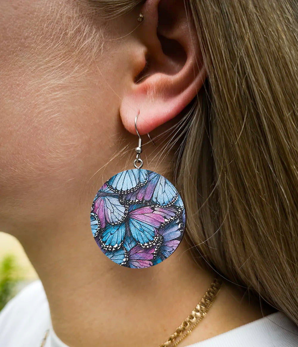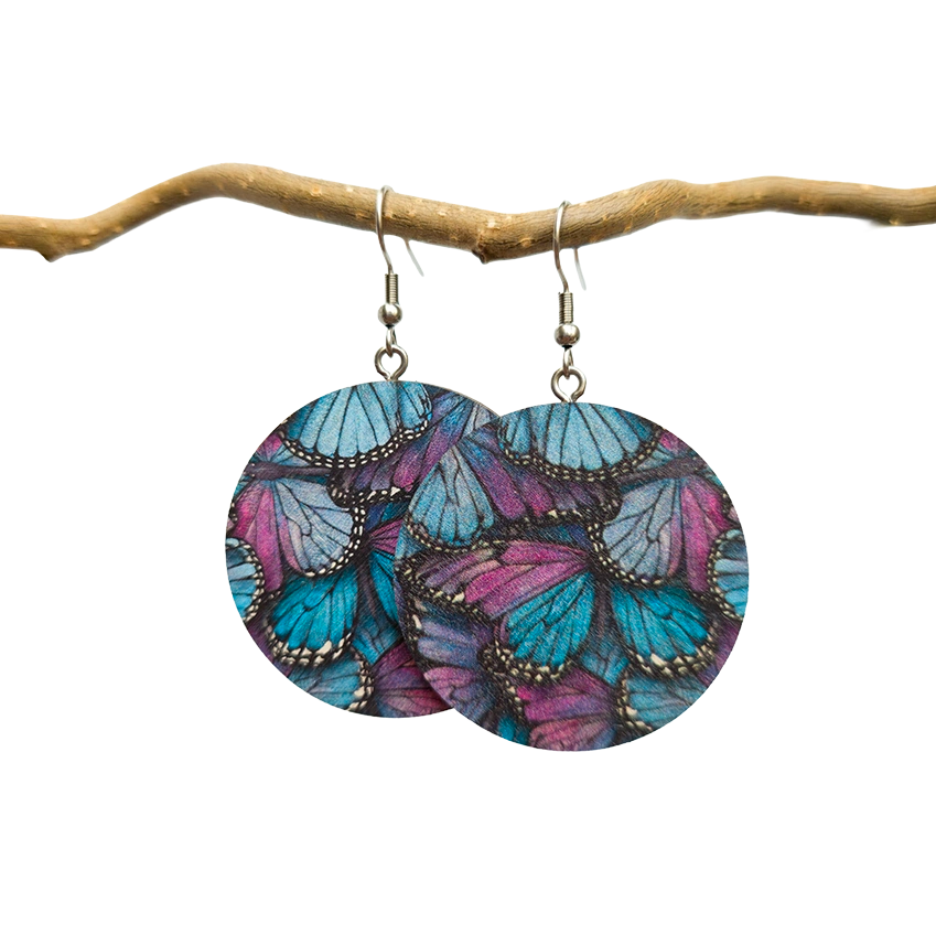 Kevyt ja kestävä laserleikattu suomalainen koivuvaneri, jossa on UV-tulostettu pintakuvio. Koukut: Hypoallergeeniset, nikkelivapaat metallikoukut: Kirurginteräs (316). Mitat: 40 mm x 40 mm, paksuus 3 mm.
