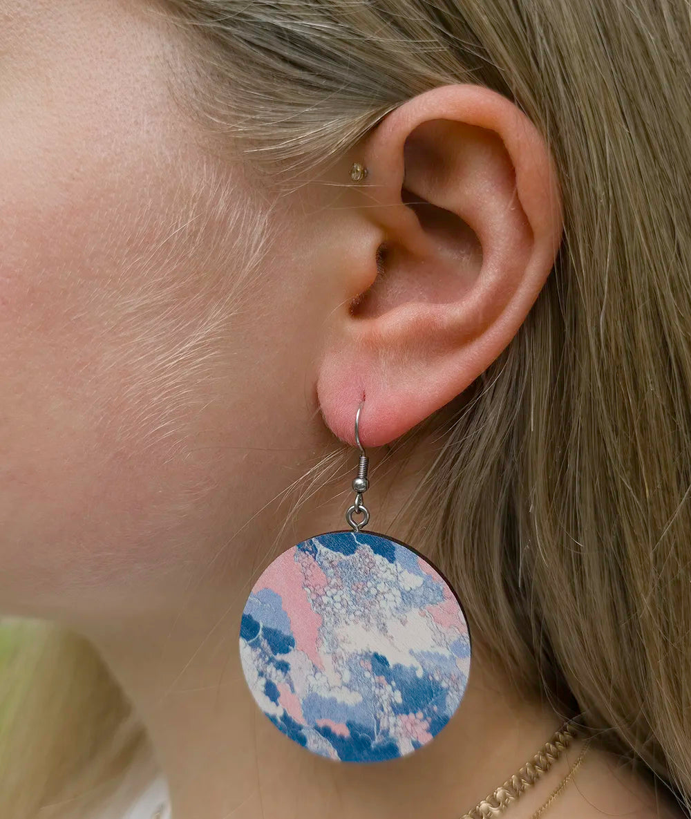 Kevyt ja kestävä laserleikattu suomalainen koivuvaneri, jossa on UV-tulostettu pintakuvio. Koukut: Hypoallergeeniset, nikkelivapaat metallikoukut: Kirurginteräs (316). Mitat: 40 mm x 40 mm, paksuus 3 mm.