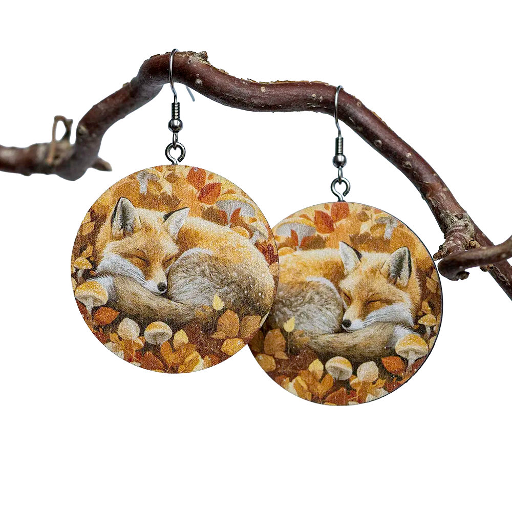 Kietoudu syksyn lämpöön näillä hurmaavilla korvakoruilla, joissa nukkuva kettu on käpertynyt pesäänsä kuivien lehtien suojaan. Tämä herkkä ja yksityiskohtainen kuva-aihe on kuin pieni tarina luonnon rauhasta ja levosta. Käsin piirretty alkuperäisdesign herää eloon laadukkaalla painatuksella kevyellä puupinnalla. Korut ovat täydellinen asuste kaikille luonnonystäville ja unelmoijille, tuoden ripauksen metsän taikaa päivääsi.