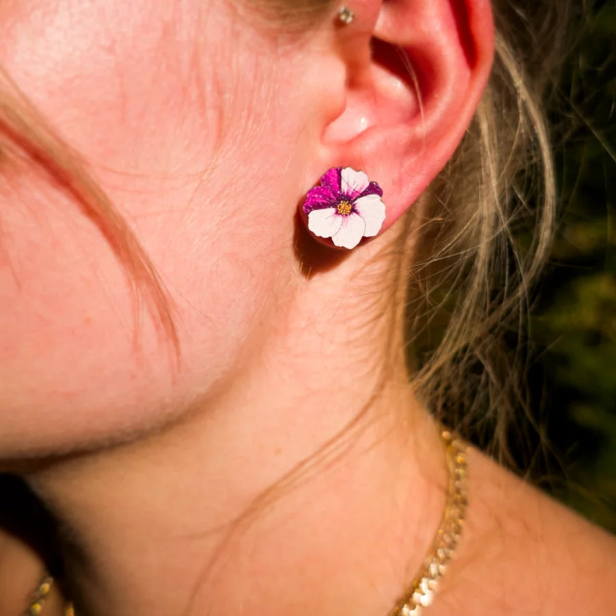 Hienostunut ja herkkä, mutta samalla persoonallinen. Nämä kehäkukkamaiset nappikorvakorut yhdistävät kauniisti vaaleanpunaisen ja violetin sävyt luoden elegantin ja raikkaan ilmeen. Ne ovat kevyt valinta jokapäiväiseen tyyliin, joka kertoo tarinaa harkitusta itseilmaisusta