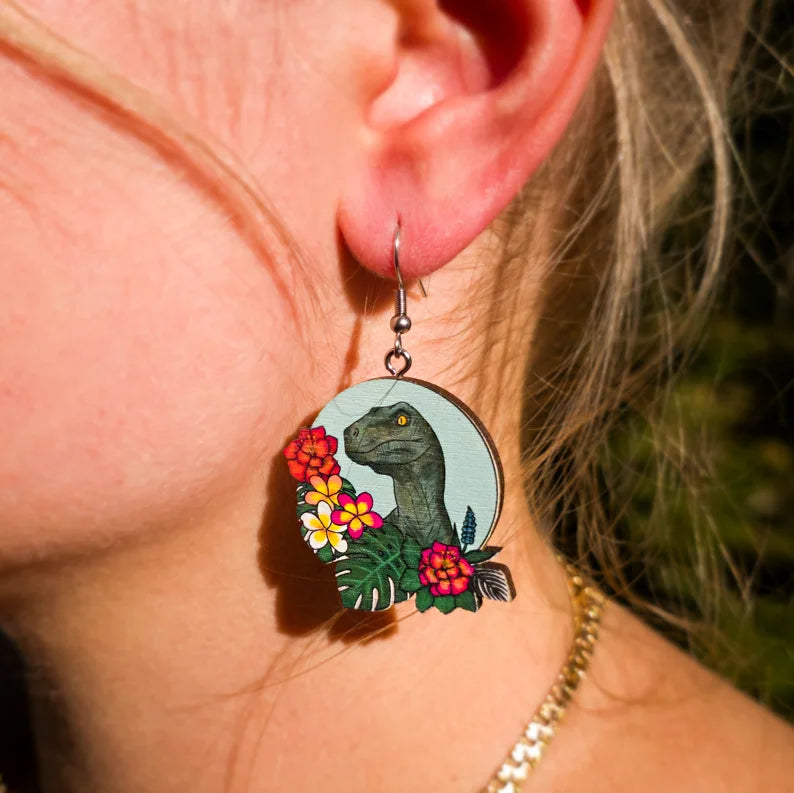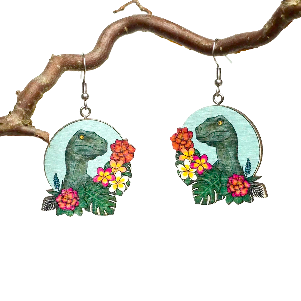 Mitä saadaan, kun yhdistetään dinosaurukset, kukkameri ja ripaus ironista tyylitajua? Täydellisen absurdin ihanat Clever Girl -korvikset! Näissä koruissa villi luonto kohtaa värikylläisen vintage-estetiikan, ja lopputulos on kaikkea muuta kuin tavallinen. Valmistettu kotimaisesta vanerista – kevyet, mutta asenteella.