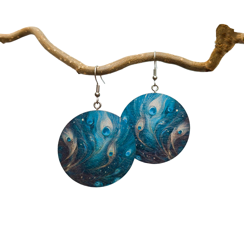 Kevyt ja kestävä laserleikattu suomalainen koivuvaneri, jossa on UV-tulostettu pintakuvio. Koukut: Hypoallergeeniset, nikkelivapaat metallikoukut: Kirurginteräs (316). Mitat: 40 mm x 40 mm, paksuus 3 mm.